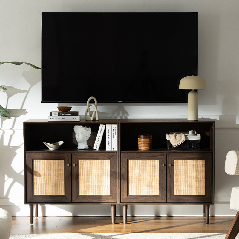 کابینت دو درب روستیک با درب حصیری (Y-C43) یک راه حل زیبا و کاربردی برای ذخیره سازی خانه است. درهای دوبل از مواد طبیعی چوب خیزران ساخته شده و با دستگیره های برنجی آنتیک مطابقت دارد. سبک روستیک بافت گرم را به اتاق نشیمن، اتاق خواب، اتاق غذاخوری و فضاهای دیگر تزریق می کند. درهای کابینت به آرامی باز و بسته می شوند و فضای داخلی مجهز به پارتیشن های قابل تنظیم است که به طور انعطاف پذیر فضای ذخیره سازی را تقسیم می کند و مناسب برای نگهداری لباس، کتاب، زباله یا نمایش زیور آلات تزئینی است.
